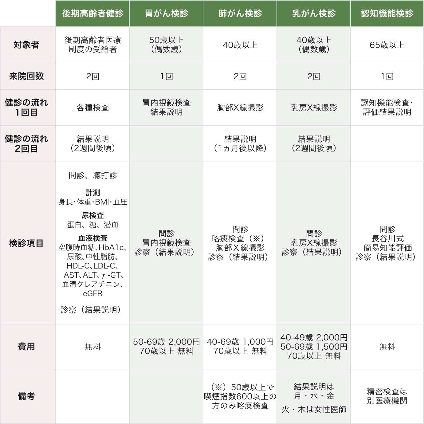 当院では、人間ドックの他に以下の神戸市指定健診もお受けいただけます。
