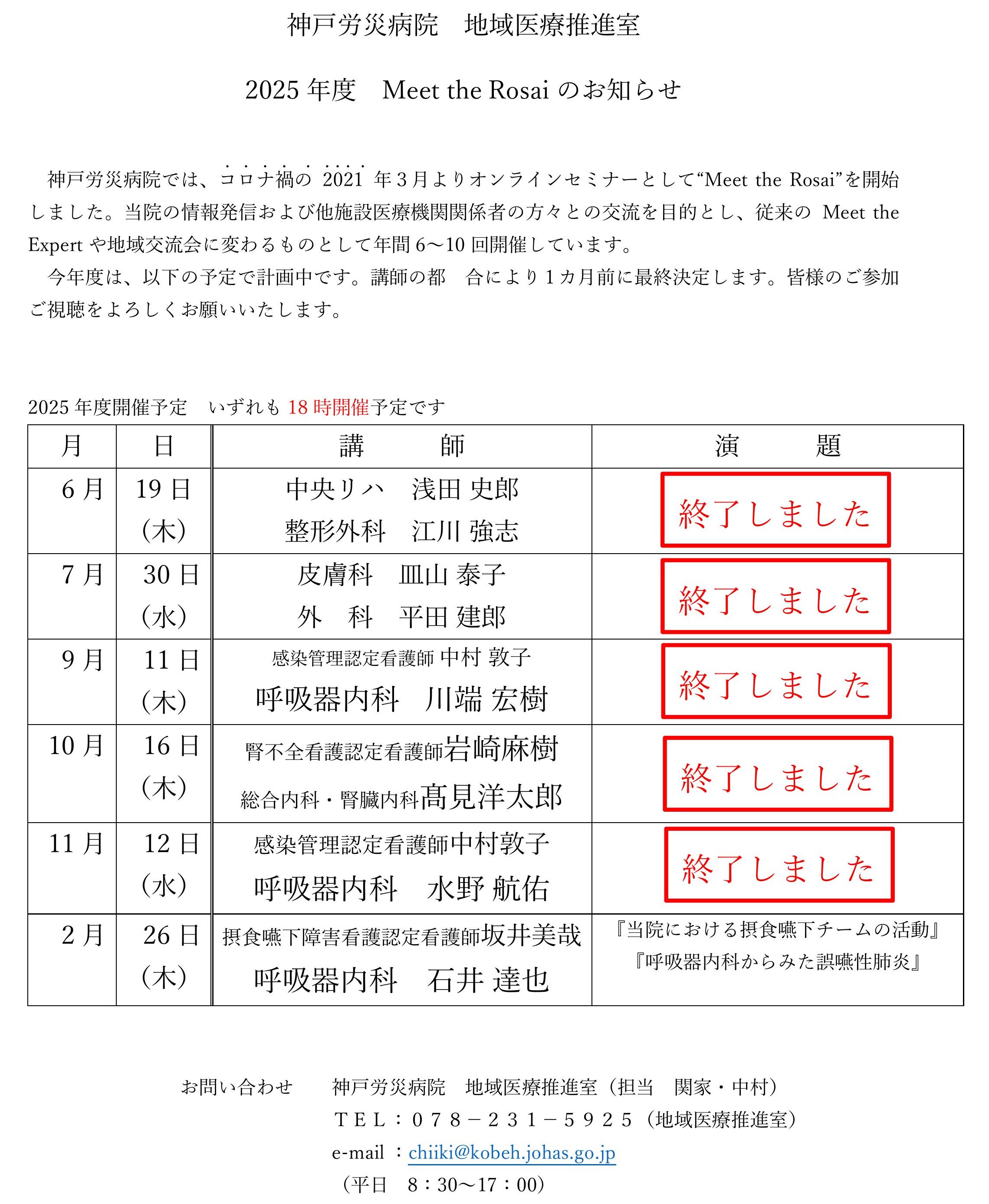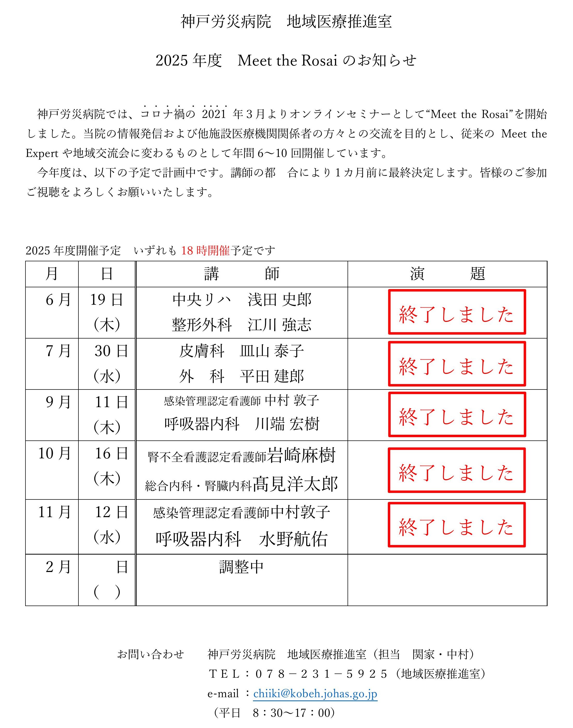 お申し込みは地域医療推進室までご連絡ください。